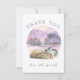 Pretty thank you card watercolored in soft colours of lavender, grey, and fawn brown. Two sweet resting bunnies in a woodland, mountain landscape scene. Your greeting is set in a classic font with your signature in a modern calligraphy lettering style. Ideal thank you card for baby gifts, showers, birthdays, etc.