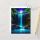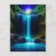 Pretty illuminated waterfall going over the mountains at night ai art.