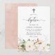 Pretty White Blush Watercolor Floral Girls Baptism Invitation