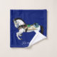 A beautiful white carousel horse is on a blue background to make a stunning design. There is plenty of room for an optional name.