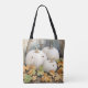 PRETTY WHITE FALL PUMPKINS AND AUTUMN LEAVES TOTE BAG