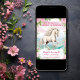 Pretty White Horse and Pink Flowers Birthday Invitation