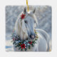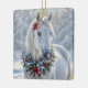 Pretty White Horse with Wreath Christmas Holiday Ceramic Ornament