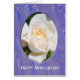 pretty white rose flower in purple frame happy anniversary greeting card. floral photo art. Love, marriage, romance.