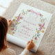 Baby Shower Welcome Sign featuring a border of watercolor wildflowers with a pink bow. Customise with your information for the mum to be. Click "click to customise further" to change the font style, size or colour.