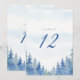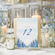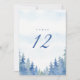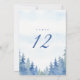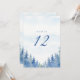 Set the scene for your winter wonderland celebration with this elegant wedding table number card, featuring a picturesque grove of pretty pine trees dusted in soft snow. The enchanting forest design conjures the romance of a frosty woodland wedding, blending rustic winter charm and the timeless beauty of nature’s evergreens. Subtle watercolor blues and greens evoke the serenity of an enchanted pine grove, while refined, easy to read serif typography ensures seamless table organisation.