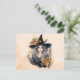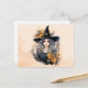 Infused with the warm colours and motifs of Halloween, this postcard is a delightful addition to your Halloween celebrations. The yellow and gold watercolor background creates a mesmerising backdrop, while the pretty witch and the grey and gold leaves add an air of whimsy and enchantment to the design. It's the perfect blend of pretty and spooky, sure to enchant recipients of all ages.