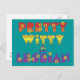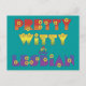 Are you pretty and witty and Lesbian? Show your pride with this whimsical postcard! The text reads: “Pretty witty & lesbian”. The lettering has a blend of colours from the Rainbow Flag. You can change the background colour, if you’d like. Want this or a similar design on another item? Browse my Errant shop.