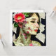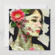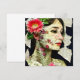 Pretty woman with pink flower in her hair art collage abstract ai art.