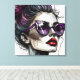 Pretty Woman in Sunglasses and Purple Lipstick Canvas Print