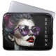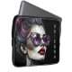 Personalised laptop sleeve. Beautiful lady with purple sunglasses and red lipstick on, Ai art with degenerative lines abstract woman with messy bun.