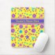 A pretty Mousepad to personalise, with a pattern of flowers in purple, turquoise, pink and orange on a sunshine yellow background, from a handpainted paper collage by Judy Adamson. You can easily change the background colour, if you wish, by using the Edit button.