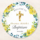 Pretty Yellow Floral Gold Cross Baptism Welcome Round Paper Coaster