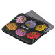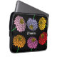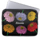 Pretty Zinnia flower design custom colour laptop sleeve. Colourful summer floral mix design. Customisable background and flower colours. Beautiful case to protect computer. Pink, purple, red, yellow, blue, green and orange colours. Soft feel. Personalise with custom name.