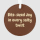 Baked pretzel illustration. Custom background colour. Custom text on both sides.