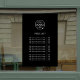 A simple custom black business vinyl window cling decal price list sign template in a modern minimalist style which can be easily updated with your company logo, custom title and costs per service or product.
