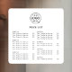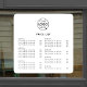 A simple custom white business vinyl window cling decal price list sign template in a modern minimalist style which can be easily updated with your company logo, custom title and costs per service or product.