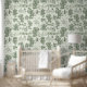 Pride and Prejudice Horses Sage White Toile Wallpaper
