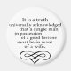 A Pride and Prejudice design featuring the first line of Jane Austen's most famous novel, the story of Eliza Bennet and Mr Darcy.