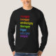 I'm really happy with this shirt - it looks great, fits perfectly, and feels right. The quality of the material and the cut is excellent. I'm really happy. I designed the print and it is exactly as I planned. In fact the colours are better than I'd hoped. The colours are fairly nuanced across the front and it wouldn't have worked if the printing wasn't exact, but it is.