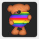Cute stickers of a little teddy bear holding a giant rainbow pride heart
