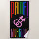 Pride! Love is Love in Colourful Rainbow Flag Colours with Pink Gay Relationship Sign on Black Background, LGBT Beachtowel