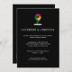 This Pride themed invitation is designed for couples who appreciate a blend of fun and refinement. It combines playful charm with mature elegance showcasing a delightful rainbow flower and timeless serif fonts against a chic dark background. It provides a first glimpse for your guests of the upcoming celebration of love and diversity.