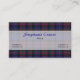 Pretty plaid business card done in the colourful Pride of Scotland tartan pattern. The front of the card has a black edged semi transparent white band, across the middle of the card, with custom regency blue and black text. The back of the card is done in white, with a strip of plaid at the bottom, and black text on the white portion. Personalise all the text to suit your needs. Stylish and professional looking business card.