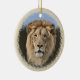 A design with a portrait image of a lion looking proudly on as his Pride rests nearby..