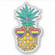 Show your pride with this cute summer sticker featuring a tropical pineapple illustration wearing a pair of heart shaped sunglasses in with rainbow pride flag lenses.