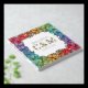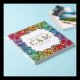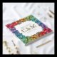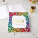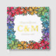 Charming floral LGBTQ wedding guest book in white with a square wreath of rainbow pride flowers ranging from red to purple with pretty baby's breath too and charming fonts printed with gold foil. Ask your guests to write down their names and a message in your square LGBT wedding guest book with rainbow coloured flowers stretching along the edges of the lesbian wedding guest book with custom gold foil fonts on cover and spine. Gay wedding guestbook with pretty flowers and baby's breath in pride colours. White and floral LGBTQ wedding guestbook with custom gold foil text.