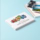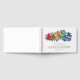 Charming floral LGBTQ wedding guest book in white with rainbow pride flowers ranging from red to purple with pretty baby's breath too and charming fonts printed with gold foil. Ask your guests to write down their names and a message in your LGBT wedding guest book with rainbow coloured flowers stretching out across the top of the lesbian wedding guest book with custom gold foil fonts on cover and spine. Gay wedding guestbook with pretty flowers and baby's breath in pride colours. White and floral LGBTQ wedding guestbook with custom gold foil text.