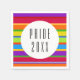 Napkins for your PRIDE party! These napkins feature a multi coloured rainbow stripe pattern with the words PRIDE 20XX in the centre. Text can be personalised.
