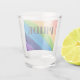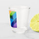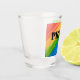 This shot glass features watercolor stripes in rainbow colours and says "Pride" in black typography. Original Watercolor © Michele Davies.