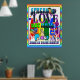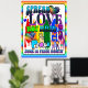 Spread Love Not Hate Poster for Pride Month. Graphics include hearts, rainbows, peace sign.