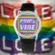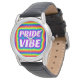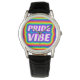 Celebrate diversity and inclusion with this vibrant design featuring "PrideVibe" surrounded by a spectrum of rainbow colours. The radiant hues contrast beautifully against the sleek black leather strap, creating a bold statement piece that embodies unity, love, and individuality. Perfect for showing off your Pride year-round with a stylish and colourful watch.