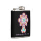 A stylish gift hip flask to commemorate a religious event shown here as a Priest ordination anniversary but feel free to change the text to fit any event or to customise with a name; at no extra charge. The image is of a beautiful ornate and colourful holy cross.