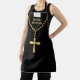 Add your own name to this fun apron which features a priests' white collar and gold chain with cross.