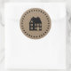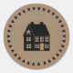 Prim House and Hearts Brown Craft Paper Style Classic Round Sticker