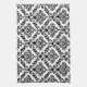 Ornate baroque style damask surface pattern design in black detail on a white background.