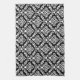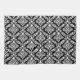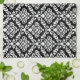 Ornate baroque style damask surface pattern design in white detail on a black background.