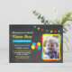 Primary Colour Photo invite with Birthday Balloons, perfect for any age birthday party. Simply change the text to suit your party. Back print included.