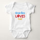Blue, yellow, and red with heart text design T-shirts, bodysuits, tote bags, and more that reads "Grandpa Loves Me!". Makes a great gift for the baby and will make grandpa smile!