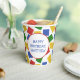 Construct the perfect birthday party for your favourite little builder with these fun custom party cups. They feature illustrations of plastic toy building bricks in bright primary colours with your own personalised message in the middle in blue lettering.