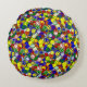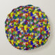 PRIMARY COLORS-FACE BEADS-RED-ROUND PILLOW-Tiny little round face beads in the four primary colours (red, yellow; green and blue) mixed with white. The are in assorted sizes and are scattered in every direction. The background is a solid colour. This design is part of a complete collection entitled: PRIMARY COLORS. Each design in the collection is created with only four colours (or less): red, yellow; green and blue. Mix and match a large variety of primary coloured designs available for a completed party theme. Choose from kaleidoscope patterns, polka dots; unique stripes, plaids and more. The colours make great gifts and décor for toddlers, daycare centres; preschools, kindergartens; home schools, teachers and more. The background colour shows through the beads just a bit. It's available in all four colours.