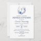 Spanish: Celebra la Primera Comunion de tu hijo o hija con esta invitacion de corona con flores azules.