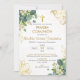 Invite loved ones to celebrate your child’s First Communion with this invitation, featuring green leaves and golden flowers. Perfect for both boys and girls, it’s an ideal choice for a Catholic Holy Communion.