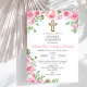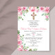 Haz que la Primera Comunión de tu hijo sea especial con esta linda y elegante invitación. Adornada con rosas rosadas y una encantadora cruz, captura la esencia de una ceremonia religiosa católica.