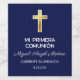 Celebra una Primera Comunión especial con esta etiqueta para botella de vino. El diseño minimalista incluye una elegante cruz dorada sobre un fondo azul. Ideal para celebraciones católicas, personalízala con la variedad de uva, el nombre y la fecha.
