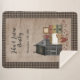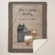 This rustic Sherpa blanket is the perfect touch to your country home. There's a bluish grey saltbox colonial home with a star in the peak, a canning jar filled with cinnamon rolls, a stack of primitive boxes, a gingerbread man, a punched tin heart picture and lots of red pip berry vines. The background is done in a grungy look linen fabric with a black and tan check border. You can personalise it with your names and the date you were married (Great wedding gift!), or change it to just your family name and the date established. If you need any help with personalisation, feel free to message me here on zazzle.